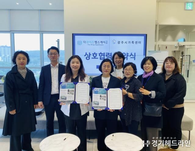 [경기헤드라인=정현수 기자] 광주시가족센터는 지난 9일 더와이즈헬스케어의원과 함께 사회복지사와 아이돌보미의 건강 증진 및 안정적인 복지·돌봄 환경 조성을 위한 업무협약(MOU)을 체결했다.