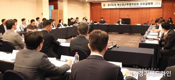 [경기헤드라인=문수철 기자] 경기도의회 경기도청 예산결산특별위원회(위원장김성수,하남2)는 6월 9일 경기도 화성시 소재 롤링힐스호텔에서 2024회계연도 결산 및 2025년 제1회 추경예산(안) 심사를 앞두고 집행부로부터 예산 현안에 대한 설명을 듣고 질의 답변 시간을 갖는 사전설명회를 개최했다.