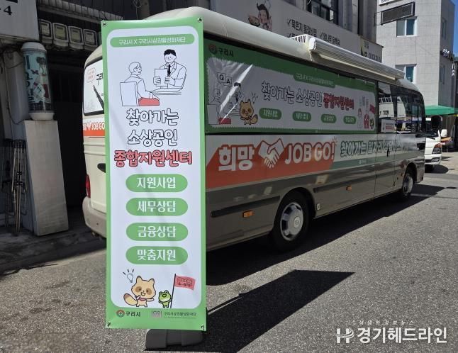 [경기헤드라인=문수철 기자] 구리시 상권 활성화 재단은 9월 10일부터 12월까지 매주 수요일, 구리시청 ‘희망 JOB GO 상담 버스’를 활용해 관내 주요 상권을 순회하며 ‘찾아가는 소상공인 종합지원센터’를 운영한다고 밝혔다.