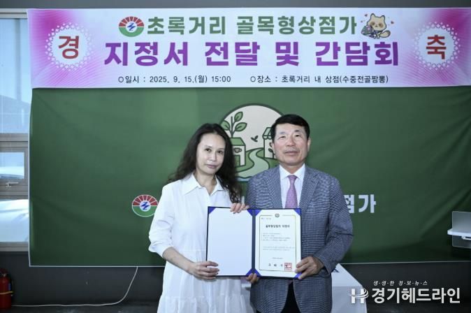 [경기헤드라인=문수철 기자] 구리시는 9월 15일 ‘초록 거리 골목형 상점가’ 지정서를 갈매 순환로 204번 길 일대 상인회에 전달하고 상인들과 소통의 시간을 가졌다고 밝혔다. 앞서 시는 지난 8월 28일 갈매동 갈매 순환로 204번 길 일대를 6번째‘초록 거리 골목형 상점가’로 지정한 바 있다.
