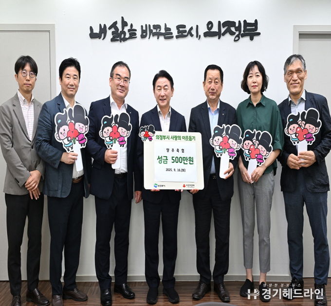 [경기헤드라인=문수철 기자] 의정부시는 9월 16일 양주축산업협동조합이 의정부시지역아동센터연합회 희망사다리를 지원하기 위해 성금 500만 원을 기부했다고 밝혔다.