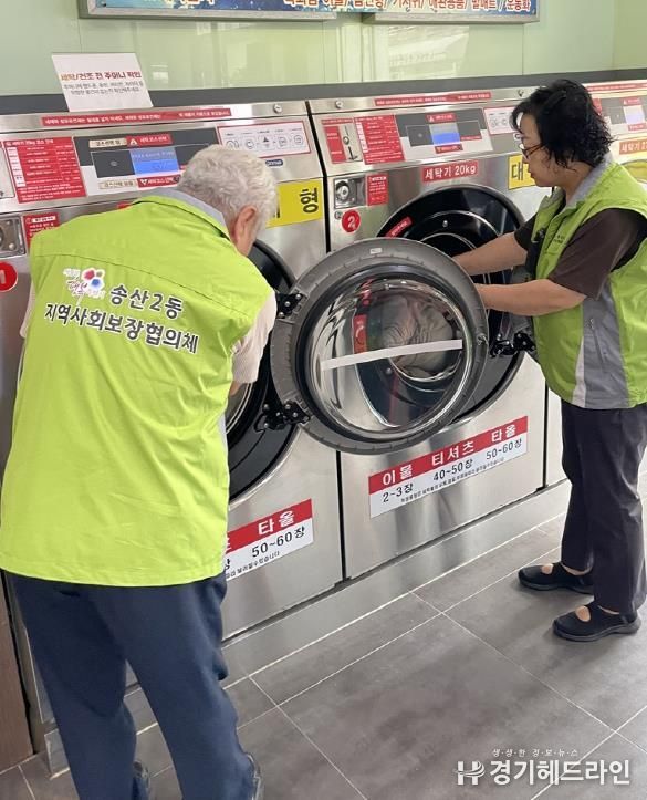 [경기헤드라인=문수철 기자] 의정부시 송산2동주민센터는 9월 16일 저소득 취약계층의 생활 위생을 지원하기 위해 송산2동 지역사회보장협의체(위원장 김호경) 주관으로 ‘온기 가득 세탁소’ 사업을 추진했다.