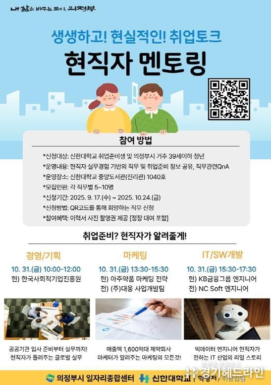 [경기헤드라인=문수철 기자] 의정부시는 청년들의 취업목표 설정과 진로 탐색을 지원하기 위해 ‘현직자와 함께하는 맞춤형 취업멘토링’을 운영한다.
