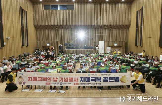 [경기헤드라인=문수철 기자] 가평군은 17일 음악역1939 뮤직홀에서 ‘2025년 치매극복의 날(9월 21일)’을 기념해 '치매극복! 골든벨' 행사를 열었다. 이번 행사는 하천1리, 산유리 치매안심마을과 치매안심센터 등록 대상자 및 주민 등 150여 명이 참석한 가운데 치매 예방과 인식 개선을 위해 마련됐다.