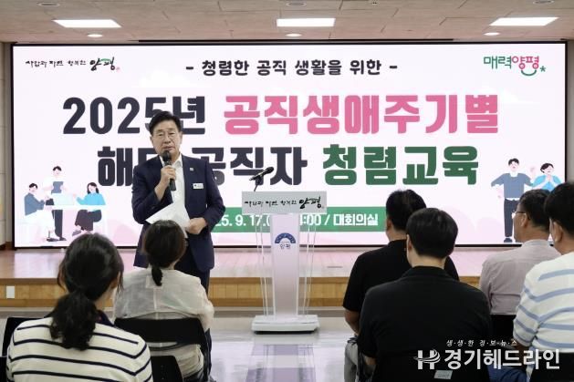 [경기헤드라인=문수철 기자] 양평군은 지난 17일 군청 대회의실에서 ‘2025년 공직생애주기 공직자 청렴교육’을 실시했다.