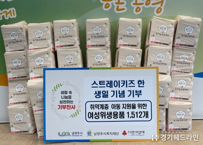 [경기헤드라인=문수철 기자] 남양주시는 16일 남양주시복지재단이 스트레이키즈 멤버 ‘한’의 팬으로부터 여성용품 1,512개를 기부받았다고 밝혔다. 이번 기부는 ‘한’의 생일(9월 14일)을 기념해 추진됐다.