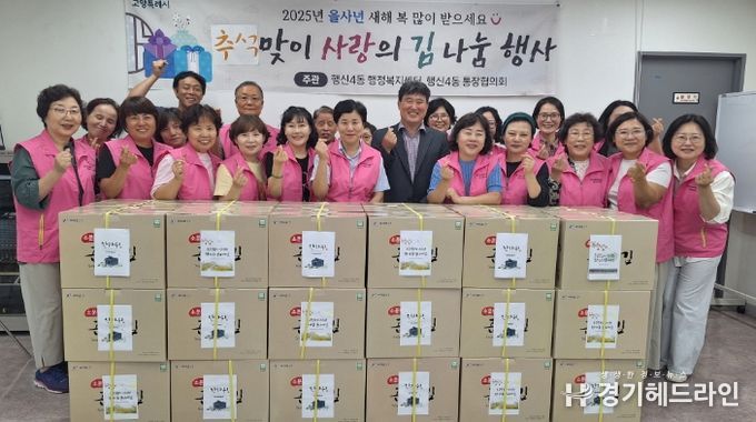 [경기헤드라인=김홍량 기자] 고양특례시 덕양구 행신4동 통장협의회는 지난 17일 추석 명절을 맞아 관내 저소득 가구와 독거노인 등 어려운 이웃에게 사랑의 김 100박스를 전달했다.