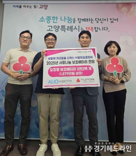 고양시 덕양구 대덕동에 소재한 ㈜알리오코리아는 IT전자제품 전문 제조기업으로, 외출이나 여행에도 안심할 수 있도록 일상생활 속에서 꼭 필요한 제품인 보조배터리를 기탁했다.