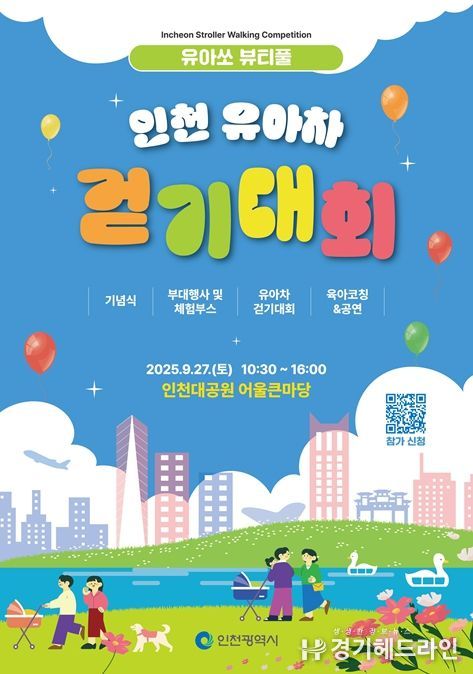[경기헤드라인=문수철 기자] 인천광역시는 오는 9월 27일 인천대공원 어울큰마당에서 ‘2025년 인천 유아차 걷기대회’ 를 개최한다고 밝혔다