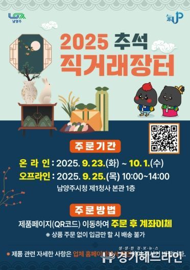 [경기헤드라인=문수철 기자] 남양주시는 추석 명절을 맞아 10월 1일까지 관내 중소기업 제품을 홍보하고 판매하는 ‘명절 직거래장터’를 운영한다고 23일 밝혔다.