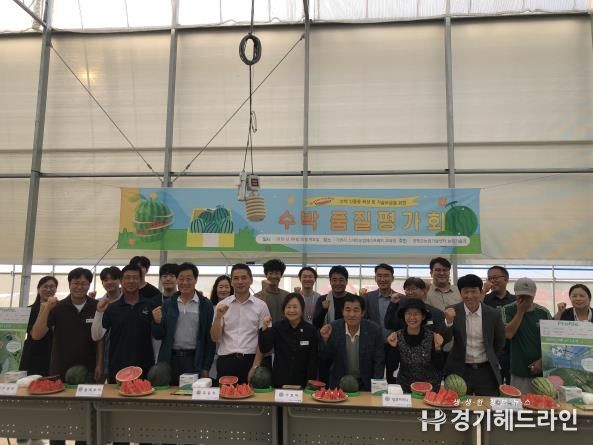 [경기헤드라인=문수철 기자] 양평군농업기술센터는 25일 청운면 스마트팜 교육장에서 2기작으로 재배한 수박 11품종을 대상으로 ‘2025년 수박 신품종 육성 및 기술보급을 위한 품질평가회’를 개최했다.