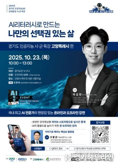 [경기헤드라인=김홍량 기자] 고양특례시는 경기도와 경기과학원이 주최하는 ‘2025년 인공지능 시군특강(고양특례시편)’을 10월 23일 마두도서관에서 진행한다고 밝혔다.