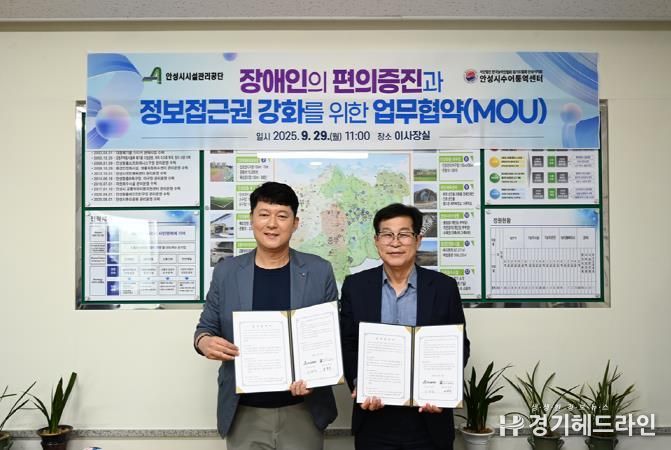 [경기헤드라인=문수철 기자] 안성시시설관리공단은 지난 29일 오전11시 공단 2층 이사장실에서 안성시수어통역센터와 안성시 공영주차장을 이용하는 장애인의 편의증진과 정보접근권 보장을 위한 업무협약을 체결했다.