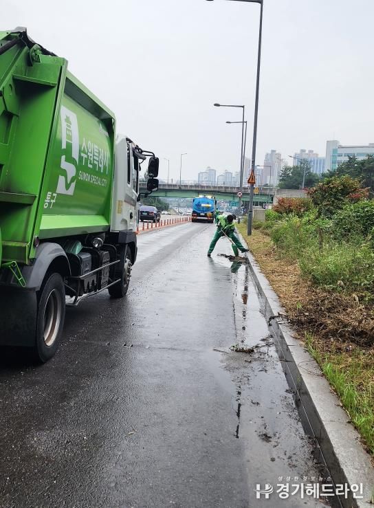 [경기헤드라인=문수철 기자] 수원특례시 영통구는 '대한민국 새단장' 캠페인의 일환으로 민족 최대의 명절 추석을 맞아 고향을 찾는 귀성객들에게 쾌적하고 안전한 도로 환경을 제공하고자 영동고속도로 동수원나들목 진출입로 집중 환경정비를 실시했다.