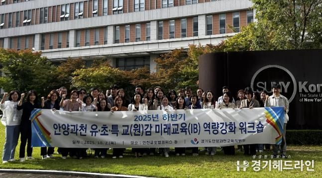 [경기헤드라인=문수철 기자] 경기도안양과천교육지원청은 10월 2일, 송도에 위치한 인천글로벌캠퍼스 일대에서 안양과천 관내 유치원, 초등학교, 특수학교 교(원)감을 대상으로 ‘2025 하반기 미래교육(IB교육) 역량강화 워크숍’을 운영했다.