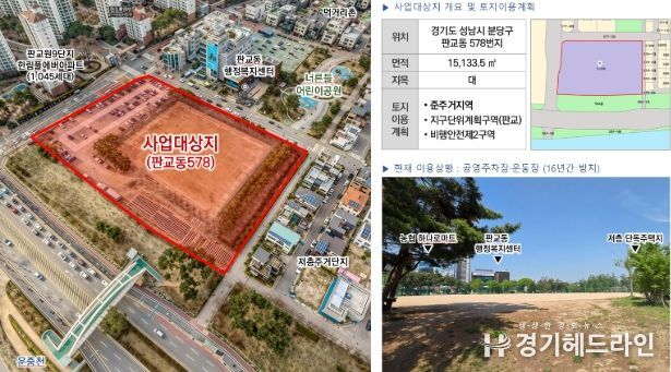 [경기헤드라인=문수철 기자] 성남시는 판교동 578번지 옛 차량등록사업소 부지의 개발 방향을 ‘기업 유치 및 복합문화체육시설 조성’으로 확정하고, 내년부터 사업을 본격 추진한다고 2일 밝혔다. 이는 16년간 방치된 부지를 지역 발전과 시민 편익 증진의 거점으로 탈바꿈시키려는 시의 강력한 의지가 반영된 결과다.