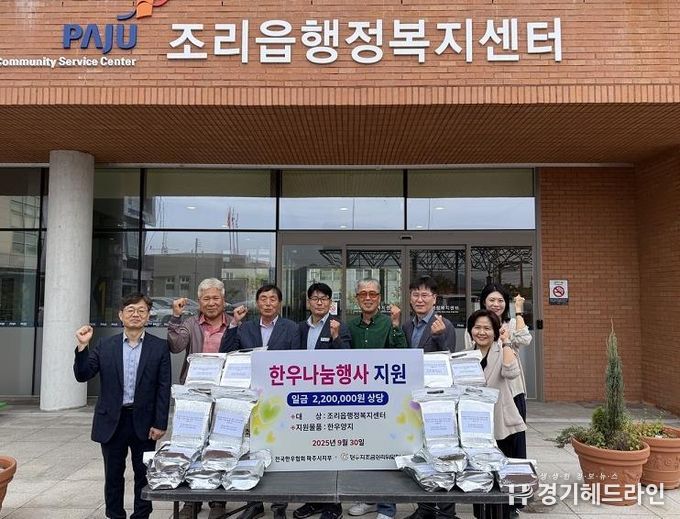 [경기헤드라인=김홍량 기자] 파주시 조리읍은 지난 9월 30일 전국한우협회 파주시지부로부터 추석 명절을 맞아 220만 원 상당의 한우 양지 43kg을 기탁 받았다고 전했다.