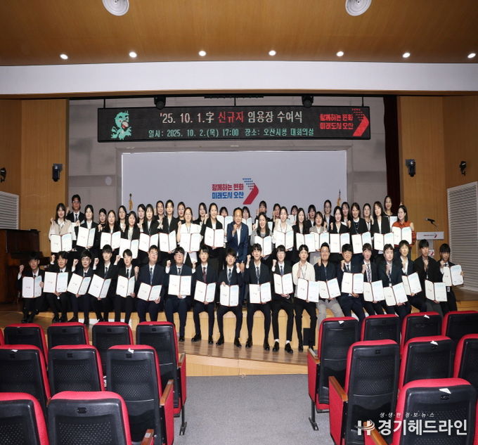 [경기헤드라인=문수철 기자] 오산시는 지난 10월 2일 오산시청 대회의실에서 2025년 신규 임용 공직자 52명을 대상으로 임용장 수여식을 개최했다고 밝혔다.