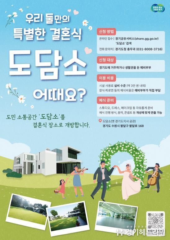 [경기헤드라인=문수철 기자] 도민 소통공간인 ‘도담소’를 작은결혼식 공간으로 개방한 경기도가 1호 예비부부를 모집한다고 13일 밝혔다.
