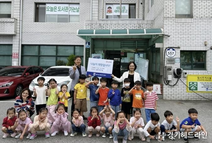 [경기헤드라인=문수철 기자] 홍익 어린이집 원아들이 지난 10월 2일, 아나바다 장터를 운영하여 마련한 95만원 수익금을 세류3동의 어려운 이웃들을 돕기 위해 세류3동 행정복지센터에 전달했다.