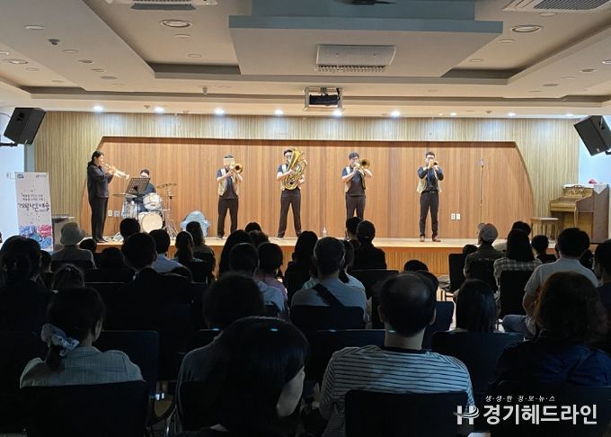 공연은 경기아트센터의 ‘2025 거리로 나온 예술’ 공모사업에 선정돼 추진됐으며, 금관 5중주 공연팀인 ‘조이브라스밴드’가 출연했다. △트럼펫 △호른 △트롬본 △튜바 등 다채로운 금관악기의 풍부한 음색이 어우러져 관객들의 큰 호응을 얻었다.