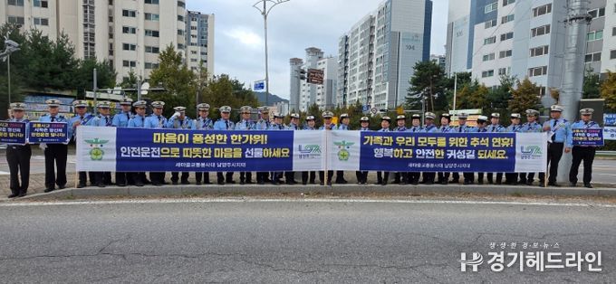 [경기헤드라인=문수철 기자] 남양주시는 지난 4일 새마을교통봉사대 남양주시지대가 호평IC 입구에서 추석맞이 교통사고 예방 캠페인을 진행했다고 13일 밝혔다.
