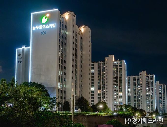 [경기헤드라인=문수철 기자] 오산시 관내 아파트(공동주택) 단지들이 오색찬란한 빛으로 물들고 있다.