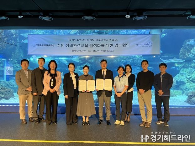 [경기헤드라인=문수철 기자] 경기도수원교육지원청은 10월 14일, 수원 E:음 공유학교 프로그램의 다양화를 위해 경기도양궁협회 및 아쿠아플라넷 광교와 업무협약을 체결했다.
