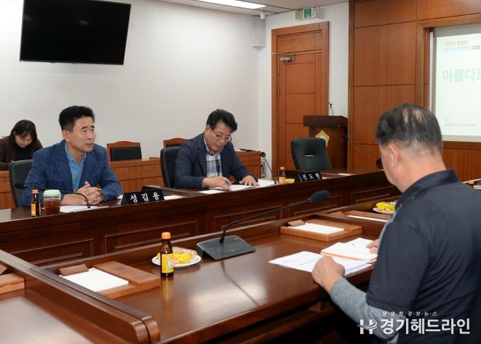 [경기헤드라인=문수철 기자] 오산시의회는 15일 의회 제2회의실에서 성길용 부의장 주재로 ‘아름다로 상인회’와 간담회를 개최했다. 이날 간담회는 아름다로 골목상권의 현안을 공유하고 활성화 방안을 모색하기 위해 마련한 것이다.