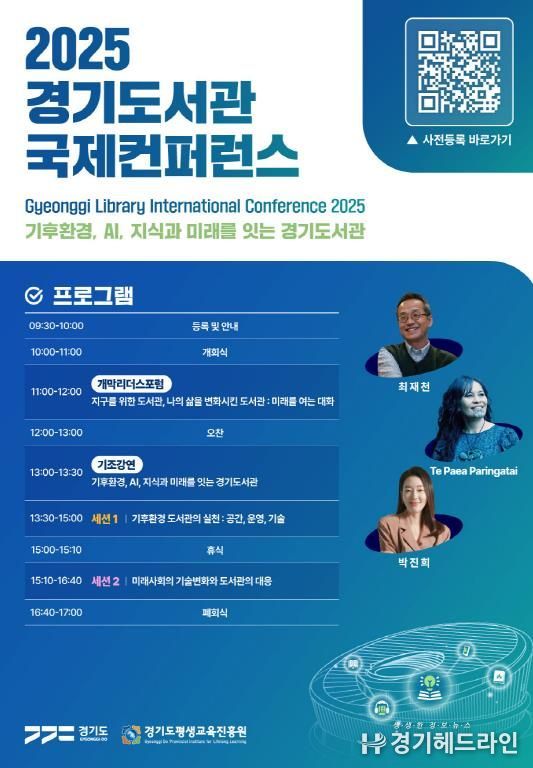 [경기헤드라인=문수철 기자] 경기도와 경기도평생교육진흥원은 오는 23일 수원컨벤션센터 컨벤션홀3에서 ‘기후환경, AI, 지식과 미래를 잇는 도서관’을 주제로 ‘2025 경기도서관 국제콘퍼런스’를 개최한다.