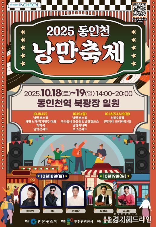 [경기헤드라인=문수철 기자] 인천광역시가 주최하고 인천관광공사가 주관하는‘2025 동인천 낭만축제’가 10월 18일부터 19일까지 동인천역 북광장에서 개최된다.