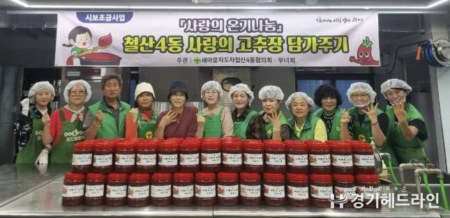 [경기헤드라인=문수철 기자] 광명시 새마을지도자 철산4동 협의회와 새마을부녀회는 16일 광명시 채움부엌(공유부엌)에서 ‘사랑의 고추장 나눔 행사’를 진행했다.