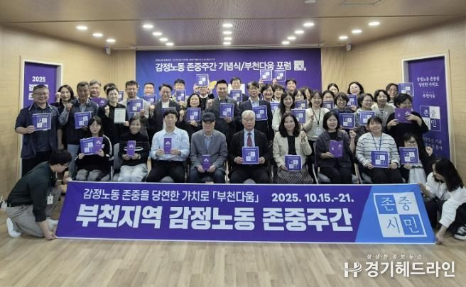 [경기헤드라인=문수철 기자] 부천시 일쉼지원센터는 지난 14일, 감정노동 존중 주간 부천다움 포럼과 기념식을 성공적으로 개최했다. 이번 행사는 ‘감정노동자 보호법’(산업안전보건법 제41조) 시행 7주년을 맞아, 감정노동 존중을 당연한 가치로 확산하기 위해 부천시 일쉼지원센터와 부천상공회의소, 한국노총 부천김포지역지부가 공동으로 추진했다.
