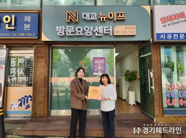 [경기헤드라인=문수철 기자] 화성특례시가 16일 병점동 소재 대교뉴이프 방문요양센터 화성센터를 ‘치매극복 선도단체’로 신규 지정하고 현판 전달식을 가졌다.