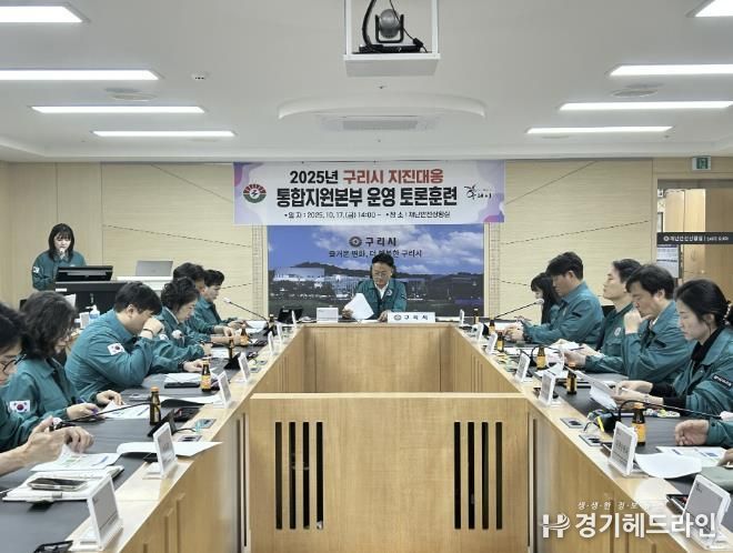 [경기헤드라인=문수철 기자] 구리시는 지난 10월 17일 구리시청 재난 안전상황실에서 지진으로 인한 대규모 인명 및 재산 피해 발생을 가정한 '2025년 지진 재난 대응 통합지원본부 운영 토론훈련'을 실시했다고 밝혔다.