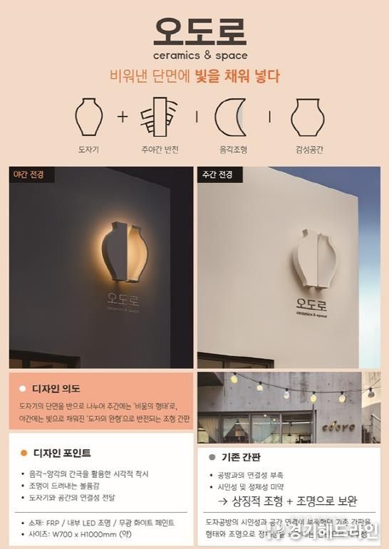 1차 심사를 통과한 작품들은 옥외광고심의위원회의 2차 본심사를 거쳐, 작고 예쁘면서도 친환경적인 소재를 사용하고 건물과 조화를 이루는 우수 간판 9작품이 최종 선정됐다.