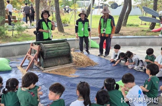 [경기헤드라인=문수철 기자] 평택시는 지난 16일부터 19일까지 평택시 농업생태원에서 열린 제13회 경기정원문화박람회 기간에 농업해설 및 농촌체험 프로그램의 하나로 ‘오성뜰 벼 탈곡체험’을 운영했다.
