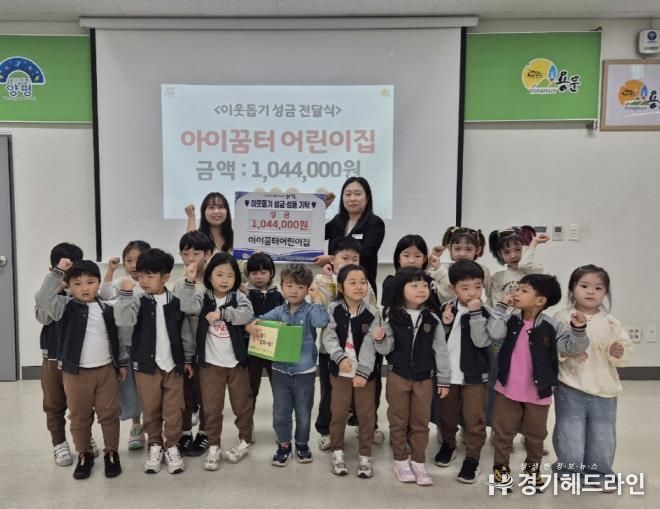 [경기헤드라인=문수철 기자] 양평군 용문면은 지난 20일 용문면 소재 아이꿈터 어린이집이 주최한 ‘소소한 기쁨, 특별한 만남, 행복 나눔 작은 장터’ 바자회를 통해 마련된 수익금 1,044,000원을 용문면에 기탁했다고 밝혔다.