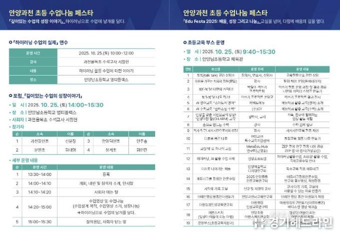 이승희 교육장은 “이번 에듀-페스타(Edu-Festa)를 통해 수업과 삶이 이어지는 수업 나눔으로 협력적 수업문화가 확산되고, 다양한 교육활동의 운영 성과 공유하여 교육주체가 함께 배우는 성장의 기회가 되길 바란다. 앞으로 학생의 꿈대로 결대로 미래를 여는 안양과천교육은 다채로운 교육활동 운영과 지원으로 모두가 성장하는 학교문화를 만들어 가겠다”고 밝혔다.