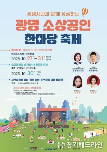 ‘광명 소상공인 한마당 축제’와 ‘지역상권 이용 캠페인’은 경기도 상권친화형 도시조성 공모사업의 일환으로, 광명시 소상공인연합회 주최·주관, 경기도·광명시·광명시의회 후원으로 열린다.