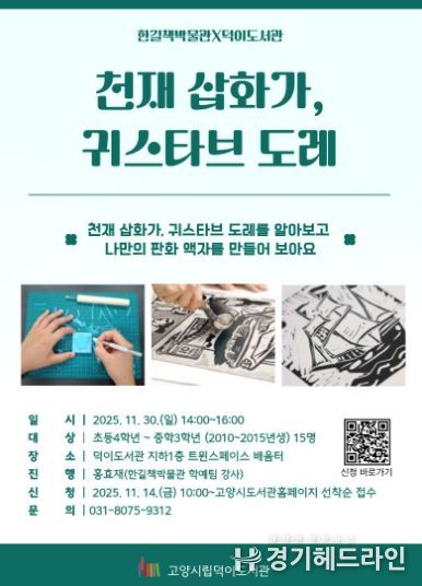 [경기헤드라인=김홍량 기자] 고양특례시 덕이도서관이 오는 11월 30일 오후 2시부터 4시까지 한길책박물관과 협력해 ‘천재 삽화가, 귀스타브 도레’ 프로그램을 운영한다.