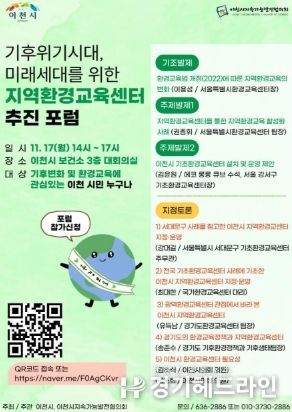 이번 포럼은 기후변화 대응과 지역 환경교육 활성화 방안을 논의하기 위해 마련된 자리로, 환경교육에 관심 있는 이천시민 누구나 참여할 수 있으며 네이버 폼을 통해 사전 신청이 가능하다.