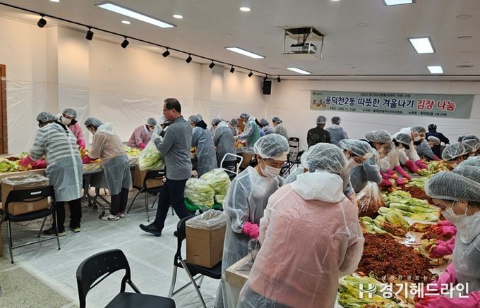 풍덕천2동 주민자치위원회는 지난 7일 통장협의회, 체육회, 새마을지도자협의회, 새마을부녀회, 노인회, 청소년지도위원회, 지역사회보장협의체 등 단체 회원들과 따뜻한 겨울나기 김장나눔’ 행사를 했다.