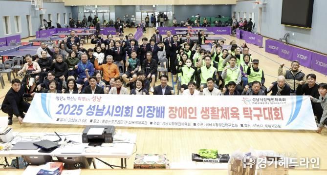 [경기헤드라인=문수철 기자] 성남시의회는 8일 성남종합스포츠센터 1층 다목적체육관에서 열린 ‘2025 성남시의회 의장배 장애인 생활체육 탁구대회’에 참석해 참가 선수들을 응원했다.