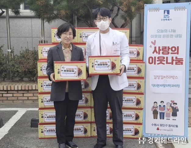 [경기헤드라인=문수철 기자] 닥터본재활의학과의원은 지난 11일 정자2동 행정복지센터를 찾아 어려운 이웃을 위해 써달라며 김장김치 50박스를 기부했다.