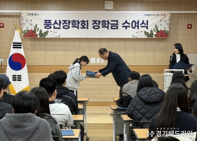 [경기헤드라인=김홍량 기자] 고양특례시 일산동구 풍산동은 지난 12일, 풍산장학회가 풍산동 행정복지센터에서 ‘2025년도 풍산장학회 장학금 수여식’을 개최했다고 밝혔다.