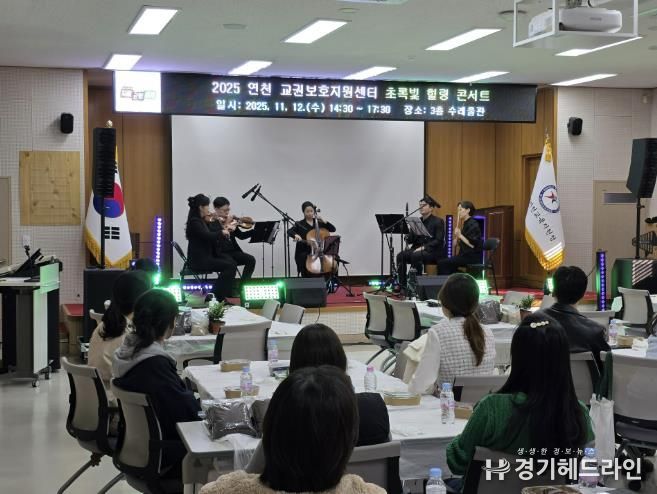 [경기헤드라인=김윤종 기자] 경기도연천교육지원청 교권보호지원센터는 2025년 11월 12일 연천교육지원청 3층 수레울관에서 교원의 정서 회복과 마음 치유를 위한 '초록빛 힐링 콘서트'를 진행했다.
