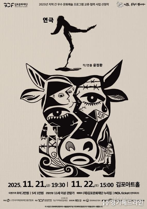 [경기헤드라인=문수철 기자] (재)김포문화재단은 오는 11월 21일부터 22일까지 이틀동안 김포아트홀에서 연극 '소' 공연을 개최한다고 밝혔다.