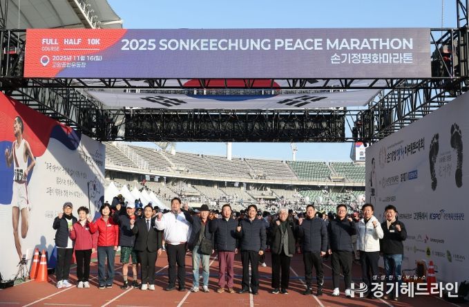 [경기헤드라인=김홍량 기자] 16일 ‘2025 손기정 평화마라톤대회’가 열린 고양종합운동장, 이동환 고양특례시장은 환영사를 통해 “광복 80주년을 기념한 뜻깊은 대회, 도로 위를 맘껏 달리며 자유를 만끽하고 광복의 의미를 되새기길 바란다”고 말했다.