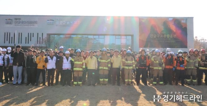 [경기헤드라인=김홍량 기자] 파주소방서는 14일 오후 2시, 파주시 탄현면 소재 국립극장 무대예술지원센터에서 파주소방서 주관으로 복합 재난 대응을 위한 긴급구조종합훈련을 실시했다.